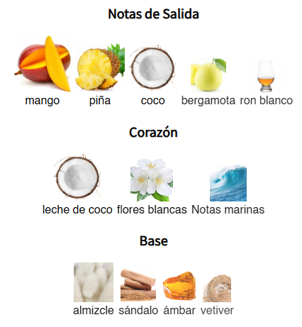 Tropical Vibe de Rayhaan es una fragancia de la familia olfativa para Hombres y Mujeres. Esta fragrancia es nueva. Tropical Vibe se lanzó en 2025. Las Notas de Salida son mango, piña y bergamota; la Nota de Corazón es coco; las Notas de Fondo son ámbar, almizcle, vetiver y sándalo.